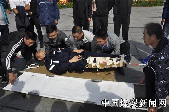 为确保演练取得圆满成功,该矿进一步完善了现场应急预案,专门成立了应急救援指挥组,相关部门协调配合精心组织,基本做到了应急事故预想、逃生路线、救援措施细致完备,做到了实施方案详细周密。通过此次应急演练,有效增强了员工的安全意识及自救互救能力,为矿井一线应对突发事件的组织协调能力,有利于进一步做好井下的安全事故防范工作,强化安全生产工作、保障员工生命财产安全奠定了坚实基础。图为燕子山矿机掘九队员工对伤员进行应急止血包扎。