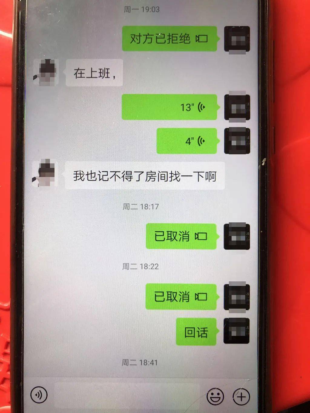 9月6日19时许,方某某和妹妹的聊天。 几乎是同一时间,9月6日18时30分左右,方某某的爸爸也收到了方某某发来的微信文字,称要家里的银行卡。方某某的爸爸以为,可能是孩子发工资了,要把钱打到银行卡,就让自己的弟弟找银行卡。 微信聊天记录显示,当日19时许,方某某的三叔没找到银行卡,给方某某打去微信视频电话,遭拒接。随后,方某某回复文字:“在上班”。之后,方某某的三叔给她语音留言,方某某用文字回复称,“我也不记得了,房间找一下啊”。