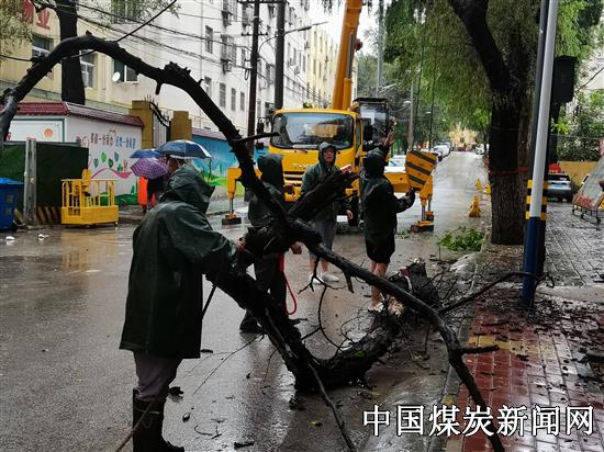 【本网讯】险情就是命令,隐患就是责任。9月18日早上,短时强降雨造成华远项目部门前大槐树主干断裂,断裂树枝架空,与光缆、供电线路缠绕,严重影响过往行人和车辆出行安全,直径30公分,长约七米的大树主枝干悬空在摄像头与马路照明灯之间,随时都有可能坠落,陕西铜川矿务局华远项目部世锦园林值班人员接到紧急救援电话,立即召集、组织人员奔赴险情第一现场。