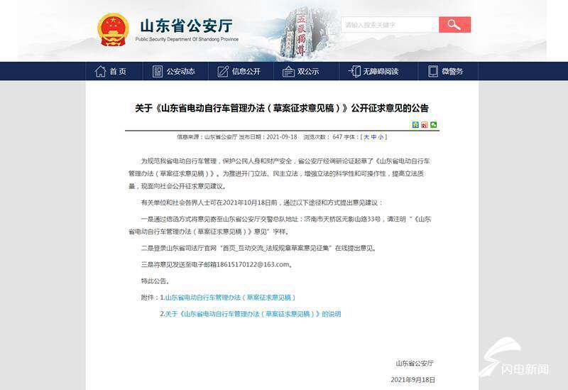 近日,山东省公安厅官方网站发布关于《山东省电动自行车管理办法(草案征求意见稿)》公开征求意见的公告。其中明确了驾乘电动车应当规范佩戴安全头盔,如果经过劝导仍拒不改正的,拟处以二十元罚款。 公告中写道,为规范山东省电动自行车管理,保护公民人身和财产安全,山东省公安厅经调研论证起草了《山东省电动自行车管理办法(草案征求意见稿)》。为推进开门立法、民主立法,增强立法的科学性和可操作性,提高立法质量,面向社会公开征求意见建议。 佩戴头盔对于电动车安全驾驶的意义不言而喻。2020年,山东省公安厅交通管理局曾召开新闻发布会,公布了一批典型事故案例,其中就有一起三轮车驾驶人驾驶三轮载货摩托车撞上停放在路边的半挂货车,由于驾驶人未戴安全头盔致其当场死亡的案例。驾驶人未佩戴安全头盔而在交通事故中受伤甚至死亡的案例在全国多地都有出现。 2021年7月26日济南交警发布了一组数据,今年以来(2021年1月1日至2021年7月21日),济南共发生涉及电动自行车的交通事故(一般程序)1760起,事故造成154人死亡,1957人受伤,分别占全市交通事故件数、死亡人数、受伤人数的39.17%、30.62%和42.94%;其中,涉及电动自行车驾乘人员未使用安全头盔的交通事故(一般程序)共1255起,造成121人死亡,1383人受伤,分别占全市交通事故件数、死亡人数、受伤人数的27.93%、24.06%和30.34%。其中,头部损伤是驾乘电动自行车者死亡、重伤和致残的主要原因。 早在2020年4月21日,公安部下发通知,部署“一盔一带”安全守护行动。公安部交管局要求各地公安交管部门,加强宣传引导,增强群众佩戴安全头盔、使用安全带的意识。随后,山东各地一直持续开展“一盔一带”安全行动,宣传活动进社区、进校园、驻路口,十八般武艺齐上阵。然而单单依靠宣传和劝导,却缺少法律依据,一线民警似乎少了些底气。 2020年5月15日,江苏省和浙江省相继发布了当地的《电动自行车管理条例》,明确规定当年7月1日起,电动自行车驾驶人和乘坐人不戴头盔将处最高50元罚款。太原、郑州等城市也对不按规定佩戴安全头盔驾乘电动车的行为作出了处罚规定。但是目前,尚没有“国字头”的法律对电动车驾乘人的违法行为作出明确的处罚规定。而此次《山东省电动自行车管理办法(草案征求意见稿)》的发布,则填补了山东相关法律法规的空白。 《山东省电动自行车管理办法(草案征求意见稿)》第三章第十九条明确,驾驶电动自行车上道路行驶,除应当遵守道路交通安全法律、法规关于道路通行的一般规定、非机动车通行规定外,还应当遵守下列规定: 在夜间或者遇有雾、雨、雪、沙尘、冰雹等低能见度情况下开启前灯和后灯;在车辆指定位置悬挂合法有效的号牌;不得实施以手持方式拨打接听电话、浏览电子设备等妨碍安全驾驶的行为;驾乘人员应当规范佩戴安全头盔等。第六章法律责任中的第三十三条规定,违反本办法第十九条第一项规定的,由公安机关交通管理部门给予口头警告,责令改正;违反第二项、第三项、第四项规定的,由公安机关交通管理部门给予口头警告,责令改正,拒不改正的,处二十元罚款。