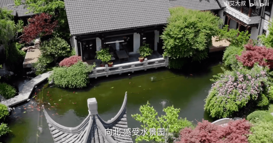 杭松居占地约5.5亩,青砖黛瓦,水榭楼阁,经典的苏州园林风格,院子内分南园、水景园、西园、北园等,种植了130多种花卉和名贵树种,不仅有被人津津乐道的300年红豆杉,据说单是日本雪松,一棵就要100万元。 园子还有大型锦鲤池,养了上百条锦鲤。园林定期维护,绿植状态良好。