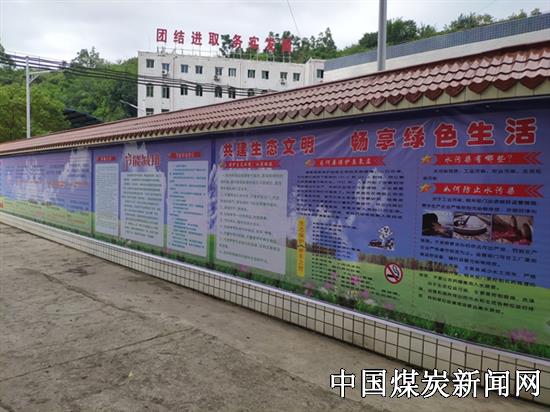 在48余米长度的墙面上,该矿向干部职工宣传了习近平总书记关于保护生态环境的重要讲话,公示了北矿环境保护工作组织机构图、环境保护基本信息、污染源监测结果、环保系统设施示意图、污水处理厂工艺流程图等矿井环保基本信息,普及了企业环保、节能减排、日常环保注意事项等知识,发出了保护环境,打造绿色企业的号召。以蓝天白云为主背景的环保专题文化墙是矿井环保宣传一道亮丽的风景线。