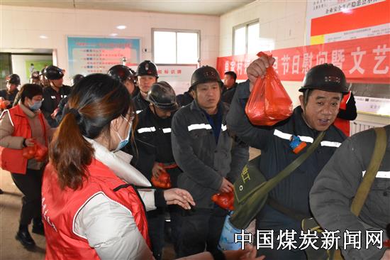 在欣赏节目的同时,志愿者们满载着对一线职工的深情厚谊,将寓意着“平平安安”的苹果和“吉祥如意”桔子送到矿工兄弟们的手上,同时送上了新年祝福和安全嘱托。大家接过代表着平安、幸福、吉祥的苹果和蜜桔,听着温馨的祝福话语,脸上洋溢着幸福的笑容,纷纷表示要做好自主保安,坚决按章操作,为我矿安全发展、和谐发展、高质量发展贡献一份力量。