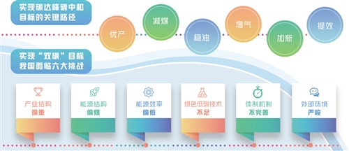 《中国碳达峰碳中和进展报告(2021)》日前在京发布。《报告》认为,持续推进产业结构调整、能源结构调整及实施节能提效,是实现碳达峰碳中和目标的关键路径。 “概括起来,可表述为‘优产、减煤、稳油、增气、加新、提效’,即优化产业结构,逐步减少煤炭消费,稳定石油消费规模,增加天然气消费规模,提升风、光等新能源消费比重,建立节能提高能效长效机制。”中国国际经济交流中心科研信息部部长、能源政策研究所负责人景春梅表示。 景春梅表示,推动实现碳达峰碳中和已成为全球共识。截至2021年,有50多个国家实现碳达峰,超过130个国家及地区作出碳中和承诺。我国碳达峰碳中和顶层设计逐步完善,推进思路逐步清晰。2021年10月,中共中央、国务院印发《关于完整准确全面贯彻新发展理念做好碳达峰碳中和工作的意见》,国务院印发《2030年前碳达峰行动方案》,两者共同构成贯穿碳达峰碳中和两个阶段的顶层设计。 “实现碳达峰碳中和,是中国向世界作出的庄严承诺,也是一场广泛而深刻的经济社会系统性变革。碳达峰和碳中和既有区别又有联系。”中国国际经济交流中心副理事长、学术委员会主任王一鸣表示,碳达峰可以在没有天花板的情况下自然达到,而碳中和是有明确的刚性约束。实现碳中和目标的难度与碳达峰峰值有直接联系。2030年前碳达峰峰值越低,意味着2060年碳中和的难度越小。因此,从现在起就要加快推进经济社会发展全面绿色转型,尽可能提前实现碳达峰并降低峰值,确保2060年前实现碳中和目标。控制二氧化碳排放,最重要的途径是结构调整、技术进步和发展可再生能源。 据介绍,《中国碳达峰碳中和进展报告(2021)》是国内第一本以“碳达峰碳中和”为主题并进行持续跟踪研究的书,由中国国际经济交流中心和国家电力投资集团有限公司共同组织编写。 《报告》认为,我国要在10年内实现碳达峰、再用30年实现碳中和,面临产业结构偏重、能源结构偏煤、能源效率偏低、绿色低碳技术不足、体制机制不完善、外部环境严峻六大挑战,应立足我国富煤贫油少气的能源资源禀赋,坚持先立后破,稳住存量、拓展增量,以保障国家能源安全和经济发展为底线,争取时间实现新能源的逐渐替代,推动能源低碳转型平稳过渡。 一是因地制宜推进碳达峰碳中和,避免“一刀切”和“碳冲锋”;二是加快产业结构调整,严控“两高”产业;三是调整能源结构,打造清洁高效现代能源体系;四是重视节能提高能效,实现能源“双控”向碳排放总量和强度“双控”转变;五是积极推动电气化、新型燃料替代、负碳等技术突破和创新;六是加强技术、政策、标准和规则等国际合作;七是深化改革,加快构建适应新能源大规模发展的电力体制。