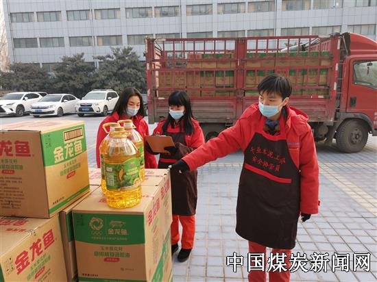 【本网讯】春节将至,为切实把企业的关怀和温暖送到职工群众的心坎上,2022年1月13日上午,河南能源焦煤公司千业水泥工会组织女工协管员给职工发放米、面、食用油等春节慰问品,活动组织井然有序,发放现场气氛热烈。图为该公司春节慰问品发放现场。