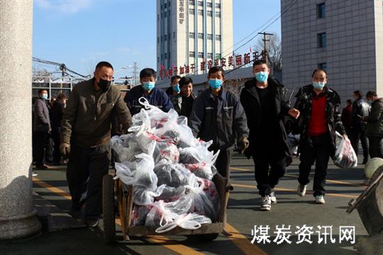 【本网讯】2022年1月17日,陕煤铜川矿业玉华煤矿信息中心楼前“年货”发放现场,清点数目、轮流装卸、前拉后推、肩挑身扛,一份份沉甸甸的“年货”为职工送去新春祝福,矿区洋溢和谐喜庆“年味足”。