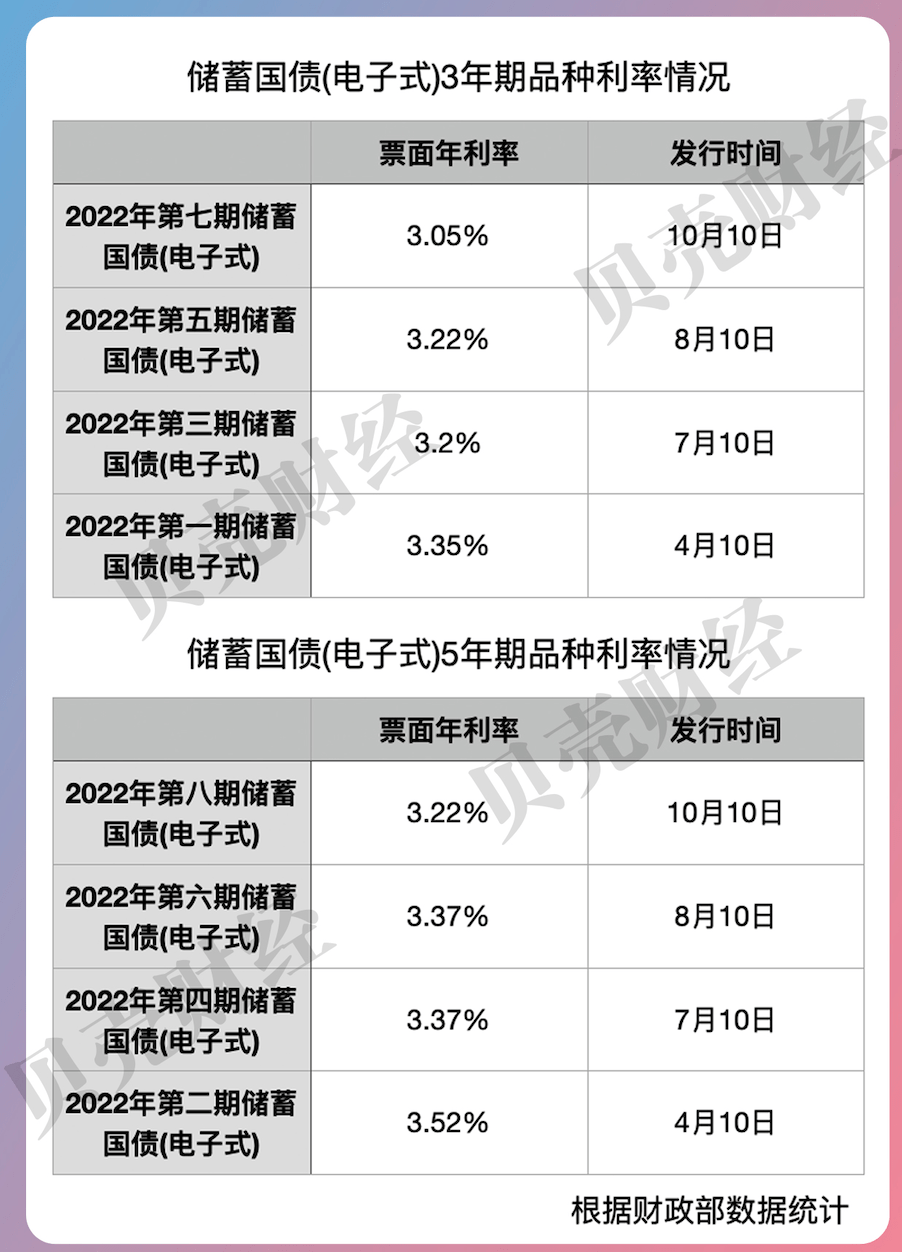 10月10日上午8点30分左右,工商银行某支行网点投资者正排队等候购买国债。图/姜樊 摄 利率下降反成“香饽饽” 储蓄国债优势依然明显 据新京报贝壳财经记者统计发现,今年以来电子式储蓄国债共发行了8期,3年期品种和5年期品种各4期,分别于4月、7月、8月和10月发售。票面年利率持续走低,其中,3年期电子式储蓄国债票面年利率从4月份的3.35%降至10月的3.05%,5年期电子式储蓄国债票面年利率从4月份的3.52%降至3.22%。 金融监管政策专家周毅钦表示,我国储蓄国债票面年利率为固定利率,总体上是在央行公布的银行定期存款基准利率基础上进行适当上浮形成。一般高出基准利率1.05到1.25个百分点。今年,在央行进行存款利率市场化改革后,存款市场化利率有所下调,因此国债发行利率也做了相应下浮。 储蓄国债票面年利率持续走低,为何还受到热捧? 某股份制银行理财客户经理坦言,电子式储蓄国债优势依然相对明显。其票面利率仍略高于部分银行同期存款利率。同时,电子式国债每年付息,且具有国家信用背书,同时还支持提前兑取利息等功能。不仅流动性相对较好,安全性亦相对较高。 今年以来银行存款利率下行趋势明显。新京报贝壳财经记者从多家银行手机银行及网点了解到,目前国有银行3年定期存款利率普遍为3.00%,略低于国债利率;但部分股份制银行3年定期存款利率可达3.3%左右,但亦有银行3年定存利率仅为2.9%。同时,多数银行5年定期存款利率倒挂,如部分国有5年定存利率仅为2.6%,远低于5年期储蓄国债3.22%的票面利率。 另据了解,此次发行的两期国债虽在发行期内不得提前兑取,但在发行期结束后,投资者可提前兑取。如需提前兑取的,可通过承销银行营业网点柜台办理,并将按照从上一付息日(含)至提前兑取日(不含)的实际天数和以下执行利率向投资者计付利息。 “目前理财市场情绪依然不稳,储蓄国债可以满足风险偏好相对较低的投资者投资需求。”光大银行金融市场部宏观研究员周茂华认为,从目前来看储蓄国债的性价比依然较高,但每次发行量相对较少,因此出现了开卖即售罄的现象。 储蓄国债以外还可如何理财? 自去年底以来,由于市场波动不断,银行理财产品收益率回撤让越来越多的投资者更倾向于国债、存款等低风险投资品种。业内人士认为,这亦是今年大中型银行存款增长较快、储蓄国债受热捧的重要因素之一。 不过,在央行日前发布的《2022年三季度城镇储户问卷调查报告》中显示,居民的投资意愿有所上升。选择“更多储蓄”的居民占比依然最高为58.1%,但较上季度出现了0.3个百分点的下降。这是自去年二季度以来的首次下降。与此同时,选择“更多投资”的居民占比则上升1.2个百分点至19.1%,亦是自去年二季度以来的首次上升。 展望四季度,理财市场又将如何演变? 在中国(香港)金融衍生品投资研究院院长王红英认为,存款、储蓄国债等低风险利率下行,或将让资金更多地进入资本市场或者其他权益类投资市场,可为经济中长期发展提供更多的资金。 值得注意的是,当前市场对资本市场复苏保持了谨慎乐观的态度。前海开源基金首席经济学家杨德龙认为,今年三季度A股市场出现了持续调整,上证指数再一次逼近3000点关口,A股近期的调整可能已经接近尾声。 “展望今年四季度的行情,随着国务院出台的一揽子稳经济增长的政策逐步落地,四季度经济有望继续复苏,市场信心有望得到一定的回升,A股有望迎来恢复性上涨的机会。新能源汽车依旧是值得重点关注的板块。”不过,杨德龙还表示,由于上涨力度仍受到各种不确定因素的影响,因此切不可过于乐观。 某股份制银行策略配置相关人士亦认为,虽然四季度资本市场在排除了各种不确定因素之后,或有一轮上涨,但建议投资者仍以稳健投资为主。风险投资固然可以获得更高的收益,但对普通投资者而言,切勿操之过急,可等到上涨行情明确之后再跟进。因此当前可选择一些半年期到一年期的纯债结构等低风险理财产品先行过渡,等待时机。 不过,对于债券市场走势,东方金诚固收研究分析师冯琳认为,债市所处环境仍偏逆风,但进一步调整幅度有限。 冯琳解释道,10月债市需要消化经济和金融数据修复带来的利空,同时,10月降息的可能性不大,能否降准置换到期MLF也需要观察内外部形势变化,货币政策在宽松方向上难有超预期举动。而近期政策层面各种动作更加指向推进宽信用,10月5年期LPR报价也有望再度单独下调,需要关注其对债市可能带来的影响。 “但鉴于当前基本面和信用扩张情况尚不支持货币政策转向,资金面将维持宽松状态,加之基本面和信用修复带来的利空在前期各类稳增长和宽信用政策举措出台时已被债市有所预期并反映在定价上,因此,10月债市调整的幅度将较为有限。”冯琳预计,10年期国债收益率将在2.65%~2.80%之间震荡。 新京报贝壳财经记者 姜樊 王雨晨