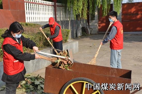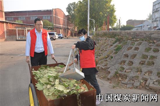 10月17日,河南能源义煤集团机电设备租赁站组织志愿者开展义务劳动,通过义务整治环境卫生,培养吃苦耐劳精神,增强党员干部岗位奉献意识,用实际行动感召身边的职工立足岗位、积极作为,为党的二十大献礼。图为职工们清理落叶。