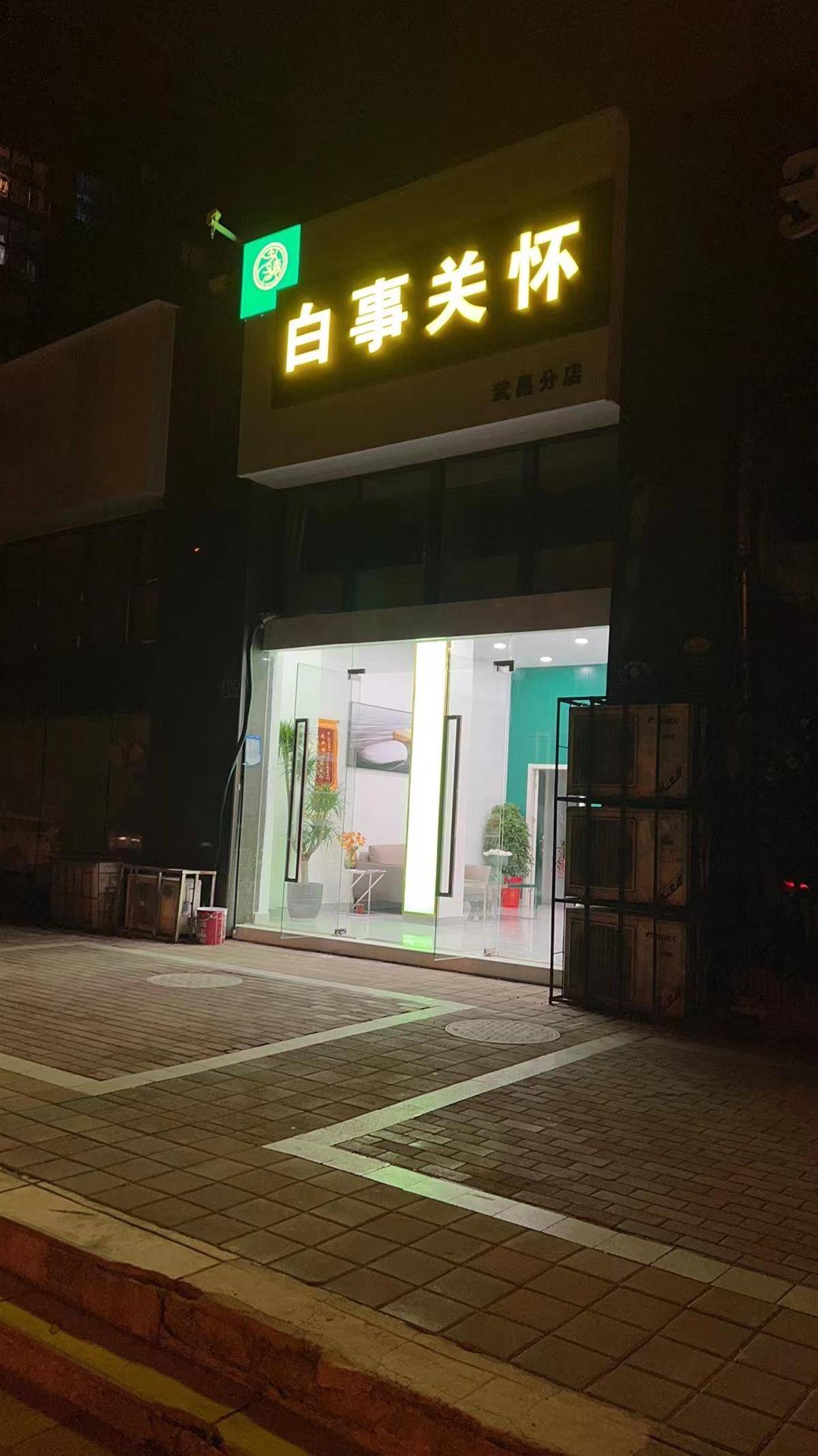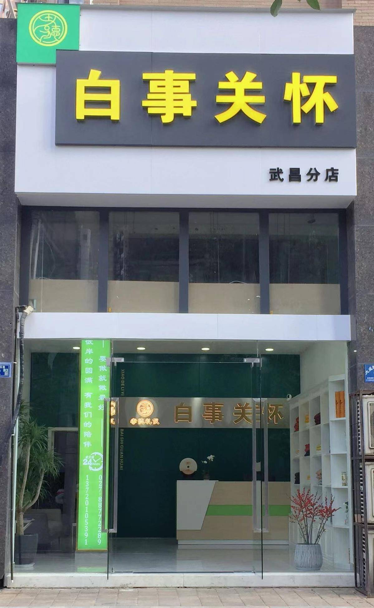 白事关怀武昌分店 李女士认为,如果在此设立殡葬用品门店,老人孩子心里会不舒服,势必影响大家的心情。得知消息的居民们在业主群里展开讨论,“我下班都会绕路回家避开这家店”“不敢往那边去”,业主群内,一些居民希望殡葬用品服务门店与小区适当保持距离,不要在居民区附近设立,特别对面还是一所学校,附近还有公交站。 当日下午3时,记者来到友谊国际二期百老汇小区,在尚隆路上找到了白事关怀武昌分店,门店斜对面正是武汉市积玉桥中学。店面里设有一个前台,左边有一块绿色灯箱,留有白色字样的电话,晚上发出绿光的正是这块招牌。 门店负责人吴女士介绍,该店10月28日开业,营业执照齐全。开社区服务点只是为了方便市民在遇到丧事时能最快找到服务,解决燃眉之急。因为来办丧事主要在夜晚,为了方便市民朋友才在店内设置了灯箱。