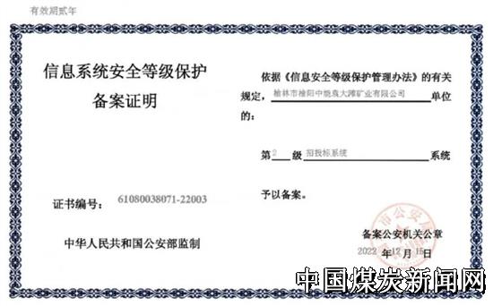 | 牢固网络安全防线—陕西中能煤田有限公司网络信息系统获公安部备案 | |||