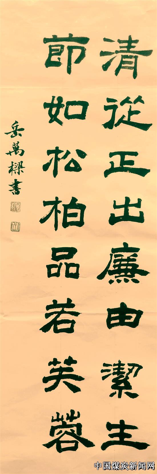 岳万樑,中共党员,助理政工师,中国煤矿书法协会会员,重庆市书法协会会员,綦江区书协三届理事。书法行书主要取法苏东坡,参学米芾、黄庭坚,上溯二王,楷书学习唐朝欧阳询、褚遂良、颜真卿,旁窥隶书曹全碑、张迁碑、石门颂以及清人邓石如。作品多次在各省市、全国煤炭系统书法展中展出。曾在企业和綦江主城从事书法教育培训,擅长青少年书法教育。