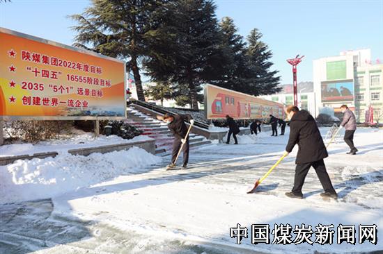 【本网讯】12月26日,陕煤铜川矿业玉华煤矿矿区一片银装素裹宛如画卷,在领略大美雪景下,该矿党员带领干群向风雪发起冲锋,保障道路安全畅通。