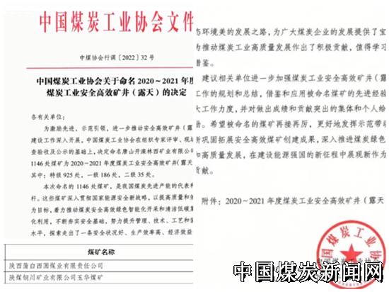 【本网讯】近日,中国煤炭工业协会下发《关于命名2020—2021年度煤炭工业安全高效矿井(露天)的决定》,陕煤铜川矿业玉华煤矿被命名为“2020—2021年度特级安全高效矿井”。