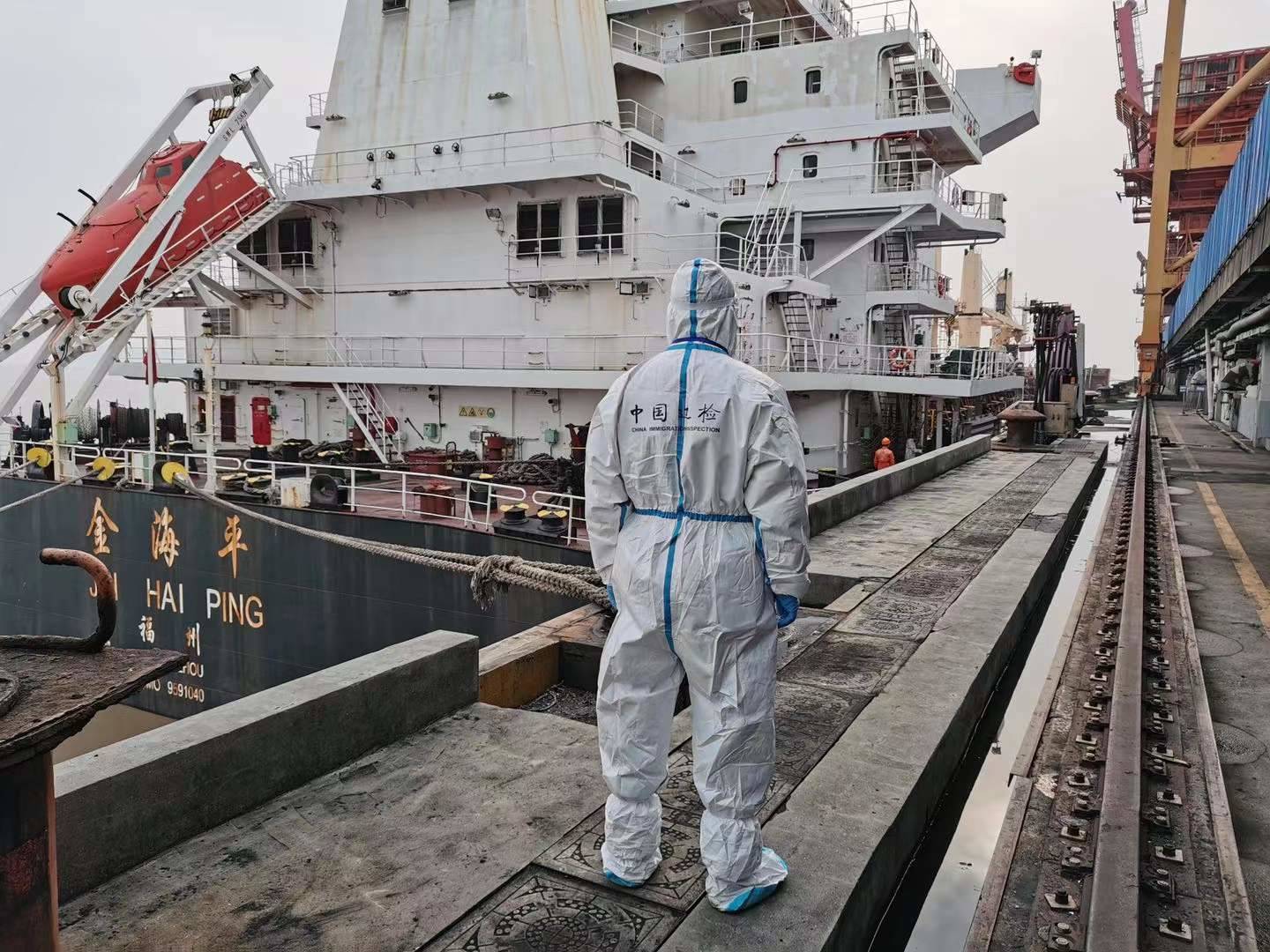 外轮靠港期间,金山边检站加强船舶在港期间监管,严格岸基人员登轮管理,确保船岸人员无直接接触。