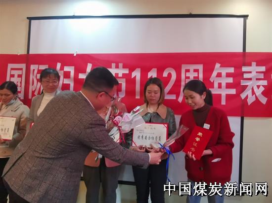 工会主席刘文涌向女职工们讲述了“三八”妇女节的由来,对广大女职工在安全生产、卫生、矿区文化建设等方方面面的工作给予了高度的肯定。也给全矿女职工提出一些希翼和要求:一是要加强学习,提高自身素养。新的形势和任务,对女工提出了新的挑战,我们要加强学习,提高素养,努力做有理想、有道德、有文化、有纪律的时代女性。二是要积极参加矿区文艺、健身、娱乐等文化体育活动,不断增强身心质量,活跃职工文化日子,用自己的美好,把矿区装扮得更加徇丽多彩。随后宣读了表彰决定,对2021年中在公司改革发展稳定做出突出贡献的女职工集体和个人进行了表彰,共表彰3个先进班组、5名巾帼岗位能手、5名优秀安全协管员。