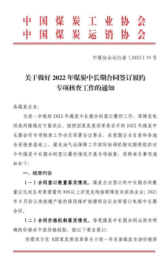 中国煤炭运销协会关于做好2022年煤炭中长期合同签订履约专项核查工作的通知