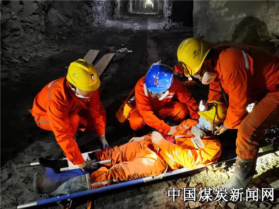 上午9:00,演练正式开始。演练模拟井下-385米水平下盘703矿房工作面,顶板发生充填跑砂,1名现场作业人员被困,当班施工队长观察跑砂及顶板情况,并报告指挥部。总指挥当即报告矿方调度,宣布启动跑砂事故应急救援预案,同时向工作面发出警报,通知作业人员有序撤离,加强警戒和通风,保持救援通道畅通,并通知各救援组展开救援。在事故现场,救援组人员对现场周围的情况进行了初步勘察,在确保现场安全的情况下对被困人员的伤口进行了处理,并将其抬上担架放入救援车辆,立即赶往地面进行救治。上午11时,救援结束,工作面一切恢复正常。此次应急救援演练现场井然有序,项目部相关部门各尽其责,达到了预期目的,有效提高了项目部各级人员应急救援能力。