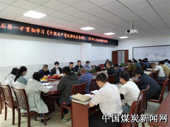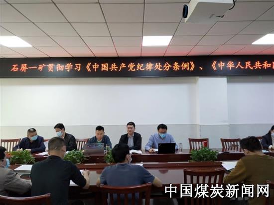 为了维护党的章程、严肃党的纪律,进一步提高干部职工政治意识、法律意识,2022年4月11日,古叙煤田公司石屏一矿纪委在调度楼会议室贯彻学习《中国共产党纪律处分条例》、《中华人民共和国民法典》,会议由该矿党委副书记、纪委书记、工会主席贾磊主持,该矿领导班子、机关部门相关人员及基层队党支部书记30人参加了学习。