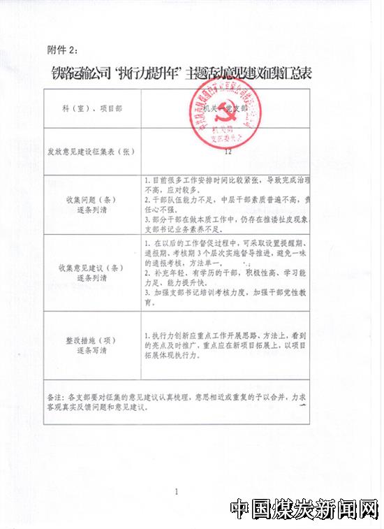 【本网讯】止亏成果如何巩固?高质量发展如何实现?蒲白矿业公司铁路运输以矿业公司工作会精神为引领,围绕2022年度各项目标任务,立足新起点,激发新状态,着力凝聚全员干事创业精气神,把“执行力提升”管理主题作为贯穿全年、覆盖全领域各环节的重要抓手,以“起跑就是加速、开局就是争先”的姿态,持续“转观念、改作风、见实效”,为高质量发展积蓄动能、夯实根基。 ![]() 一体有序推进,全面提升执行力。“部门之间相互协作能力不强,工作中存在推诿扯皮现象。”在“执行力提升年”意见建议征集调查活动中,该公司共发放意见建议表330份,征集存在问题66条,意见建议43条,经过梳理整合,共形成8条四个方面的问题和建议。