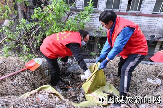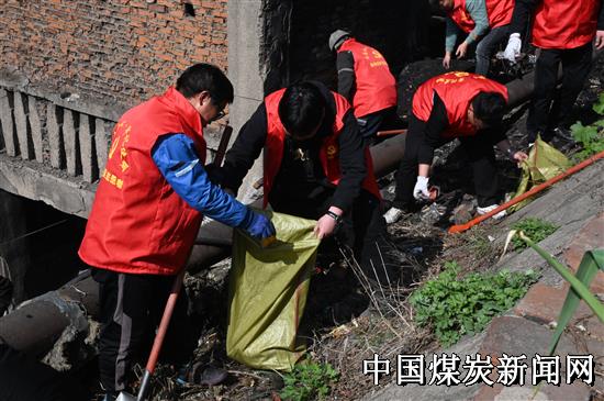 【本网讯】为打造矿区宜居文明的生态环境,将常态化环境卫生治理工作进一步细化做好。4月19日, 河南能源义煤公司石壕煤矿以为职工办实事为切入点,以弘扬志愿服务精神为发力点,由采、掘、开一线区队党支部20余名党员志愿者组成的“红马甲”队伍再次出动,全力以赴清理职工澡堂楼后的卫生死角。