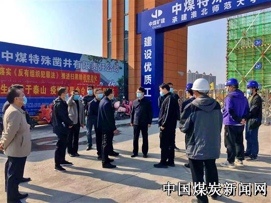 【本网讯】近日,淮北市相山区区委书记朱龙一行到中煤矿建特凿公司淮北师范大学附属相山学校项目部调研。 ![]() 朱龙一行深入施工现场,实地查看了现场疫情防控情况,听取了项目部负责人关于工程进度、安全质量管理、扬尘防治等方面的工作汇报,详细了解了项目推进中需要解决的重点难点问题。 结合调研情况,朱龙提出三点要求:一是认真科学组织施工,进一步加快施工进度,确保工程如期交付;二是扎实做好疫情防控工作,严格落实“两码一测”等疫情常态化防控举措,确保现场职工核酸检测全覆盖;三是加强现场安全生产管理,加强职工安全培训,提高职工安全意识,在保证安全和质量的前提下,优质高效地推进项目建设。