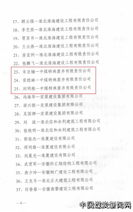 【本网讯】日前,2020-2021年度淮北市建设行业先进企业评选活动结果公布,中煤矿建特凿公司获评淮北市“先进施工企业”,宋亚楠、刘明根、栾德琳被授予淮北市“优秀项目经理”荣誉称号。