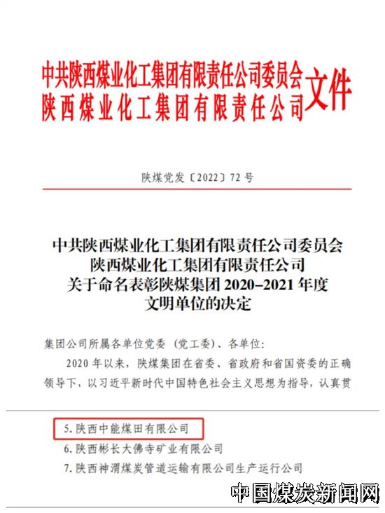 | 陕西中能煤田有限公司获得陕煤集团文明单位称号 | |||