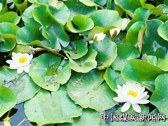 近日,石壕煤矿游园的朵朵荷花在蜿蜒的河道中相继绽放,随处可以闻到阵阵清香,为茶余饭后前来锻炼的人们增添了好心情,同时也美化了矿区环境。