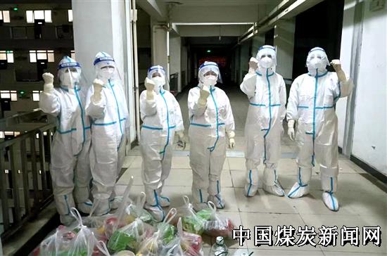 图2 本人(左三)在和同事们给隔离人员配送物资