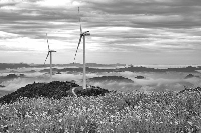 5月29日,浙江省台州市三门县,雨后的湫水山云瀑奔涌,山岭与风电机组相映成景。近年来,当地因地制宜推进高山风能发电等绿色经济发展,助力乡村振兴。林利军摄/光明图片