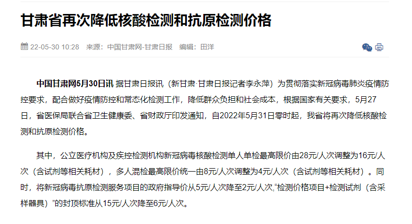 | 财政吃不消?四川阆中、甘肃陇西常态化核酸检测要自费 | |||