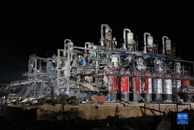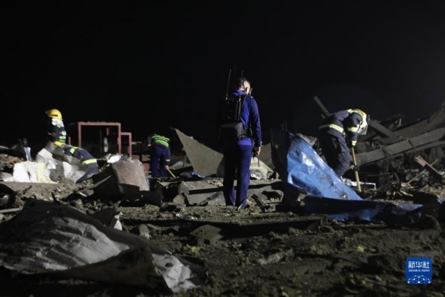 这是6月17日凌晨拍摄的事故现场,消防救援人员正在搜救。新华社记者 张智敏 摄 据了解,事发企业主要从事农药中间体及农药产品生产、经营,发生爆炸厂区为该企业污水处理车间。经初步排查,爆炸面积约600平方米,事故现场无烟、无明火、无有毒气体,排除了后续险情和次生灾害风险。 截至记者发稿时,救援和事故排查工作仍正在进行中。