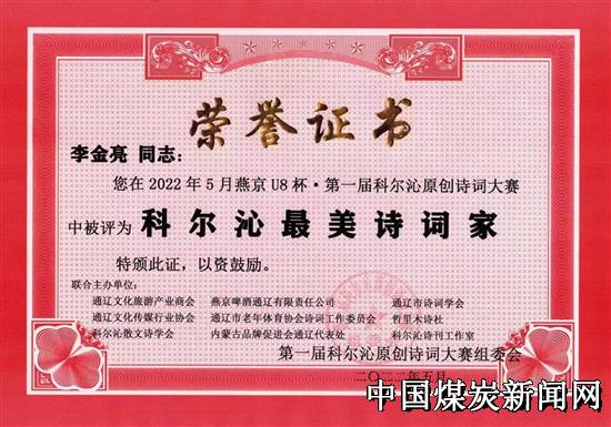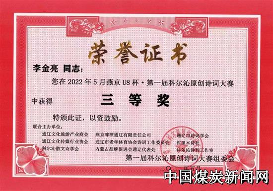 | 内蒙南矿退休员工李金亮获科尔沁原创诗词大赛奖 | |||