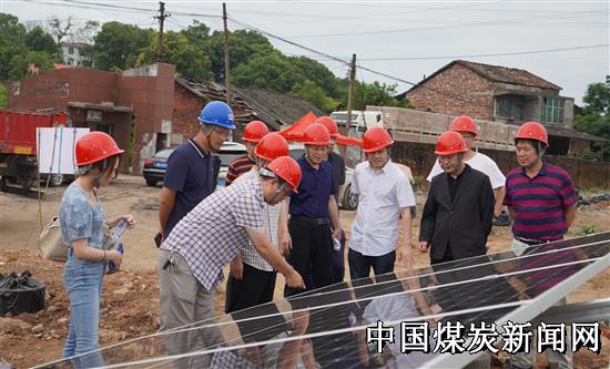 【本网讯】 6月16日,清清耒水河畔,湘煤集团公司党委委员、董事、总会计师贺灿星陪同省自然资源厅领导一行来到白沙实业公司下属白沙电力公司光伏发电二期工地检查指导项目实施情况。施工现场,机器轰鸣,工人们来来往往,一派热火朝天、鏖战正酣的建设场景,接入系统地下顶管已全部完工,正在进行升压站改造,即将铺设电缆;场区里基础灌桩2016个,部分支架、光伏板已安装到位。