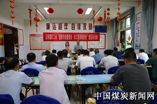 6月22日中午,在陕煤铜川矿业玉华煤矿综采队班前会上,一名矿嫂以《我家的安全故事》为题,讲述了发生在自家的“安全故事”,用危害影响警示警醒现场每个人,用温暖话语叮嘱职工时刻铭记“你的平安,是家庭幸福的基础;你的遵章守纪,是我们幸福的保障”。