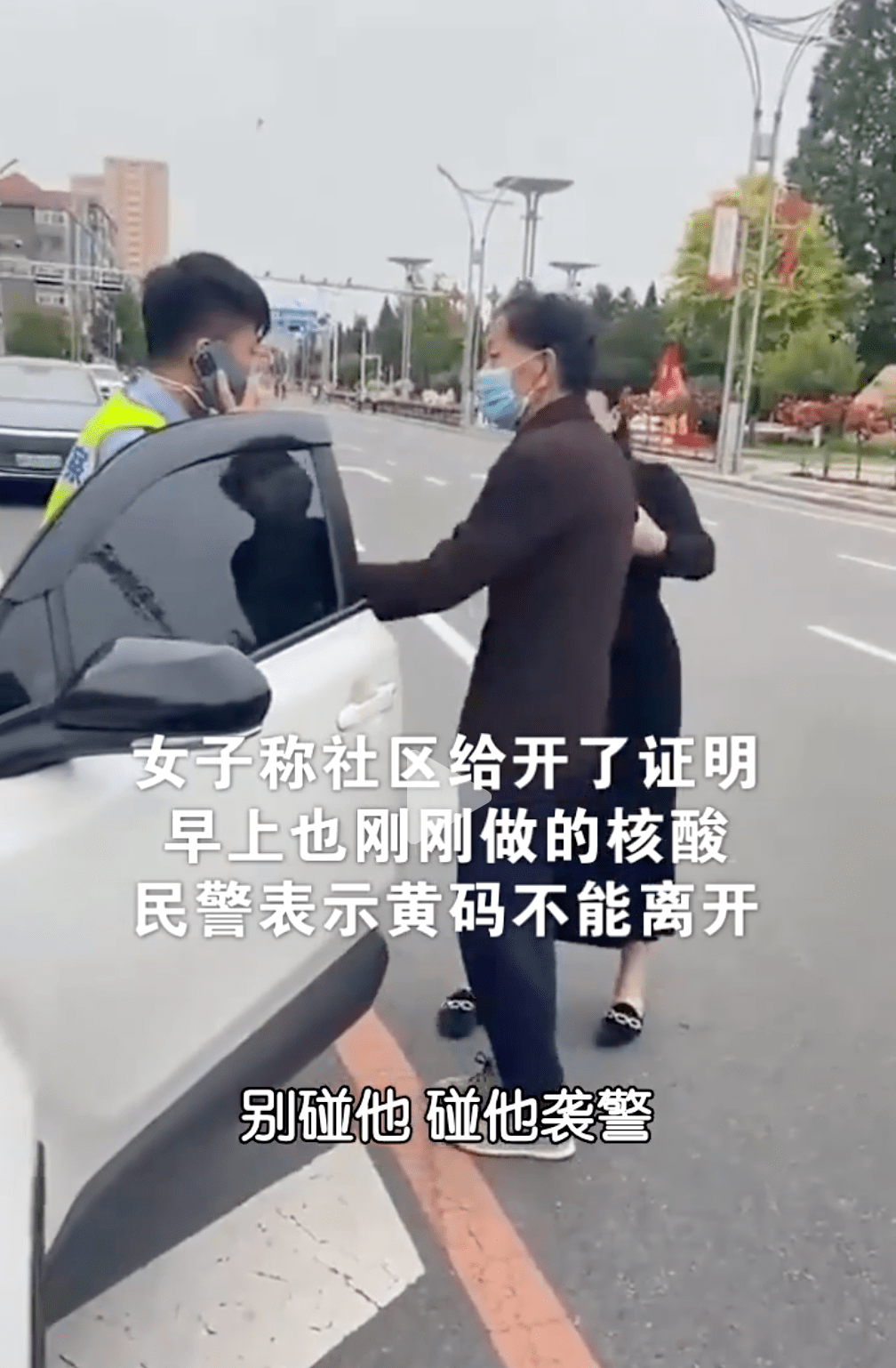 警方通报中并未提及女子和其父亲外出缘由。 6月23日,中国新闻周刊刊发消息称,上述女子与其父亲驾车外出原因是看病。 报道中提到,女子称社区给开了证明,早上也刚刚做的核酸。民警表示黄码不能离开。交涉过程中女子倒地,其父亲上前击打民警。