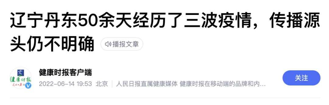 图来自辽宁省政府官网 今年6月14日,《健康时报》客户端曾刊发了一篇《辽宁丹东50余天经历了三波疫情,传播源头仍不明确》的文章。