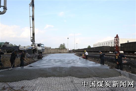 皖北煤电集团公司五沟矿认真贯彻集团公司关于环保工作的相关要求,坚持将环保攻坚放到与安全生产同等重要的位置来抓,在持续推进环保工程建设中,把煤场道路硬化工程与矿区环境一体设计、一体推进,彻底根治煤场道路扬尘污染问题。图为该矿煤场道路硬化工程正在紧张施工中。