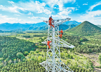 “十四五”期间,北京将持续优化能源结构,大幅提升绿电占比。到2025年,北京外调绿电量力争达到300亿千瓦时,助力低碳发展。图为北京电力工程公司工人正在加紧建设西智35千伏变电站升压工程。(记者 贺 勇摄)