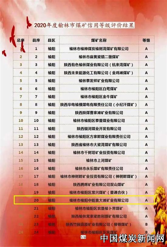 | 中能袁大滩矿业荣获2020年度榆林市煤矿信用等级A级单位称号 | |||