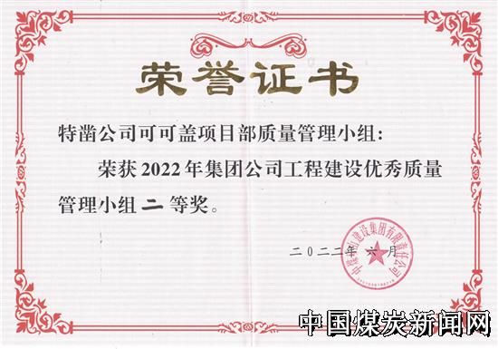 | 中煤矿建特凿公司可可盖项目部、邵长平创新工作室QC小组荣获集团表彰 | |||
