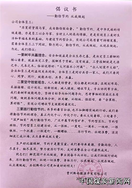 贵州安晟能源黔西公司:倡导勤俭节约树立文明新风