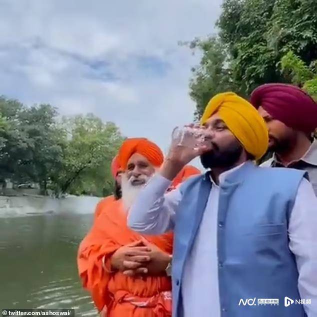 巴格万特·曼从卡利·贝恩河舀起一杯浑浊的河水并喝下。 据报道,旁遮普邦首席部长、现年48岁的巴格万特·曼(BhagwantMann)近日在喝下卡利·贝恩河被污染的河水后出现腹痛,被紧急空运到首都新德里医院接受治疗。 卡利·贝恩河被当地人视为“圣河”,但污染严重。巴格万特·曼用杯子舀起一杯污浊的河水并喝下,试图向当地人证明饮用河水的安全性。部长喝脏水的视频在网上疯传。