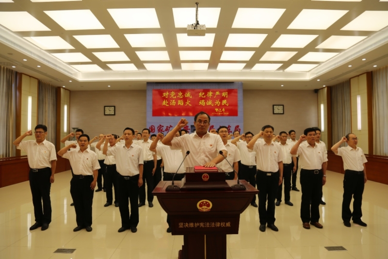 为进一步引导领导干部增强宪法意识,自觉维护宪法权威,提升依法行政意识、能力和水平,推动矿山安全监察工作再上新台阶,7月4日下午,山东局举行新任职国家工作人员宪法宣誓仪式。局党组书记、局长辛广龙担任监誓人,局党组成员、副局长王其江主持仪式。 机关各处室及事业单位领导班子成员共82人参加仪式。宪法宣誓仪式开始后,全体肃立,奏唱中华人民共和国国歌。随后,领誓人左手抚按《中华人民共和国宪法》,右手举拳领誓,其他宣誓人整齐排列右手举拳,向宪法庄严宣誓。 宣誓后,辛广龙要求大家铭记誓词,恪守宪法原则,履行宪法职责,把庄严的仪式感转化为神圣的使命感,将铿锵誓言付诸于实际行动,奋发进取,真抓实干,努力开创山东矿山安全监察新局面。