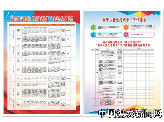【本网讯】“五单六查七考双十”工作体系挂图作战任务清单、“作风建设改进年”挂图作战任务清单醒目地悬挂在蒲白铁运公司二楼会议室的中心位置,是鞭策、监督,更代表着公司刀刃向内,“改作风、锻队伍、提效能”的决心。 ![]() 日前,蒲白铁运公司紧紧围绕矿业公司“作风建设改进年”和公司“执行力提升年”,从顶层设计入手,创新提出“五单六查七考双十”工作体系,突出整治高质量发展道路上出现的各类作风不实、纪律不严、执行不到位等问题,确保全年目标任务高质量完成。 “五单”:用好“五项清单”。矿业公司每期安全办公会一结束,公司安全监察科立即下发《关于落实安全办公会精神安排的通知》,就贯彻落实会议精神提出工作要求、列出工作清单,这仅仅是公司落实“五单”其中一项的具体举措。