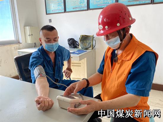 近日,面对持续不断的高温天气,冀中能源峰峰集团电业分公司九龙电厂工会为更好守护好一线职工身体健康,每天组织志愿服务人员深入控制室、工房等为职工测量血压,并做好记录,对于血压异常的职工,坚决暂停工作督促就诊,全力保障每一位职工身体健康,为安全生产稳定贡献力量。图为该厂工会志愿服务人员正在为职工测量血压。