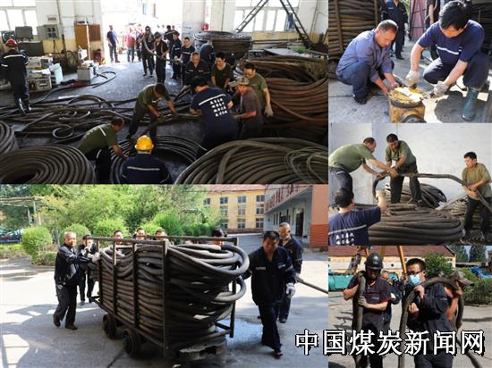 “一二三啊,加油哇,再使劲哈,再向前。”响亮的口号声响彻机修车间。这是7月7日,该矿组织党员干部职工到机修车间义务拉电缆的场景。