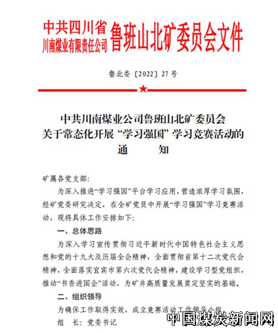 【本网讯】为加强“学习强国”平台运用,建设学习型党组织,推动“书香进国企”活动走深走实,2022年6月底,川南煤业公司鲁班山北矿党委制定了《关于常态化开展“学习强国”学习竞赛活动的通知》文件,进一步完善了评比机制。 ![]() 该矿党委在原竞赛活动的基础上,结合新形势、新要求,更新了评比标准,优化了评比程序,设置了“学习达人”和“学习之星”两个奖项;并扩大了考核范围,将职工群众中的学习爱好者也纳入评比考核范围,以鼓励更多人员参与到学习中,提升个人政治理论素养。