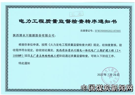 | 清水川能源公司三期项目主厂房主体结构施工前阶段顺利通过质量监督检查 | |||