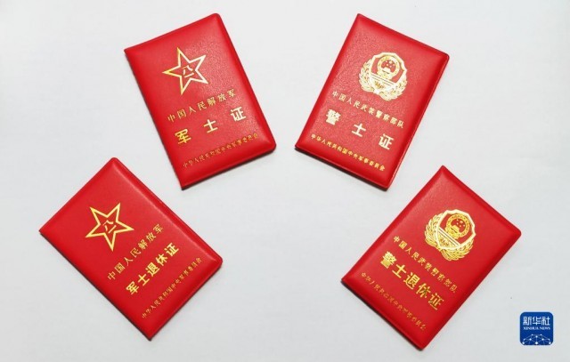 图为《中国人民解放军军士证》《中国人民解放军军士退休证》《中国人民武装警察部队警士证》《中国人民武装警察部队警士退休证》证件封皮。新华社发 这次统一制发的上述证件沿用现行本芯证件式样,主要具有以下特点:一是保持证件号码唯一性,军士证、警士证统一采用“士”冠字头加数字形式编码,军士退休证、警士退休证分别采用“军退”、“警退”冠字头加数字形式编码;二是保持与现行其他军队人员证件设计风格一致,简洁庄重、美观大方,封皮颜色均为正红色,采用阻燃防水材料,背面凹烫“中央军委政治工作部监制”;三是防伪程度较高,证芯使用专用证券纸和专色油墨定制生产,运用浮雕、定位水印、安全线、解锁、缩微文字、无色荧光、加密二维码等多项防伪技术,易于识别检验。 此外,现行退役证件整合调整,全军统一制发退出现役证书。
